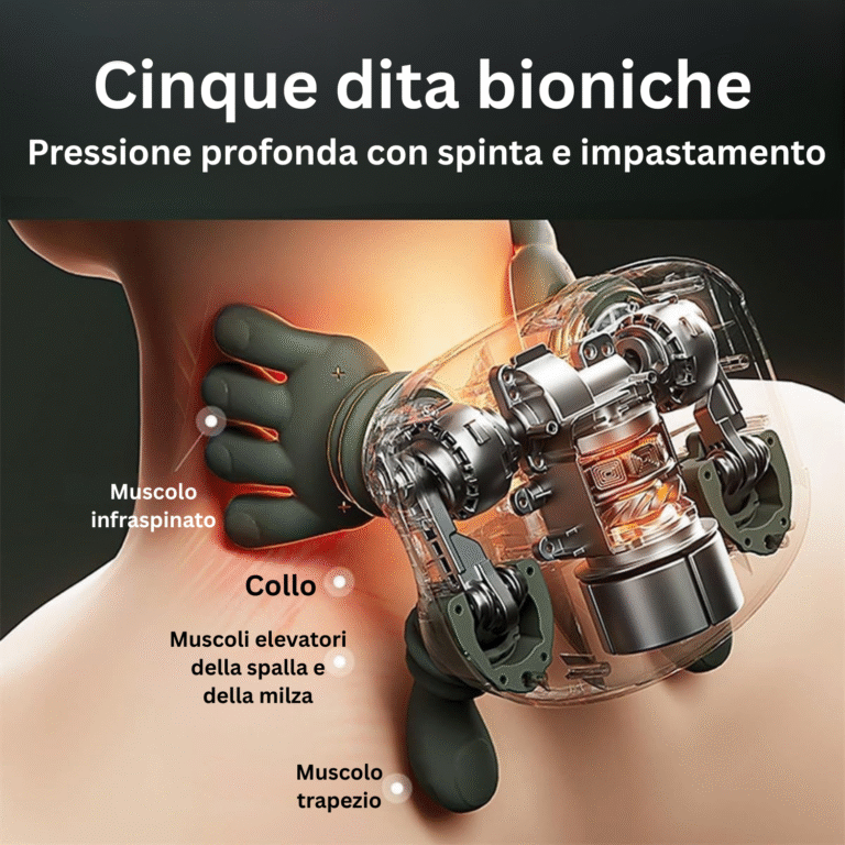 Scopri il massimo comfort con questo massaggiatore cervicale e per le spalle dotato di tecnologia Shiatsu 3D. Le 5 dita bioniche imitano perfettamente i movimenti di un terapista professionista, offrendo un massaggio profondo a collo, schiena e spalle. Con la funzione di calore regolabile, rilassa i muscoli tesi e stimola la circolazione. Il dispositivo è senza fili e ricaricabile, garantendo fino a 120 minuti di utilizzo continuo. Ideale per casa, ufficio o viaggi!