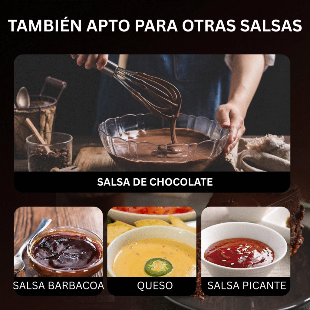 El potente motor garantiza un flujo de salsa estable y uniforme, ideal para uso profesional.