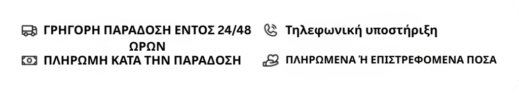Αυτός ο ιστότοπος χρησιμοποιεί cookies. Με την επίσκεψή σας, αποδέχεστε αυτήν την πολιτική. Κάθε παραγγελία καλύπτεται από διετή εγγύηση σύμφωνα με τους ισχύοντες κανονισμούς. Τα δεδομένα σας θα υποβληθούν σε επεξεργασία σύμφωνα με την πολιτική απορρήτου.