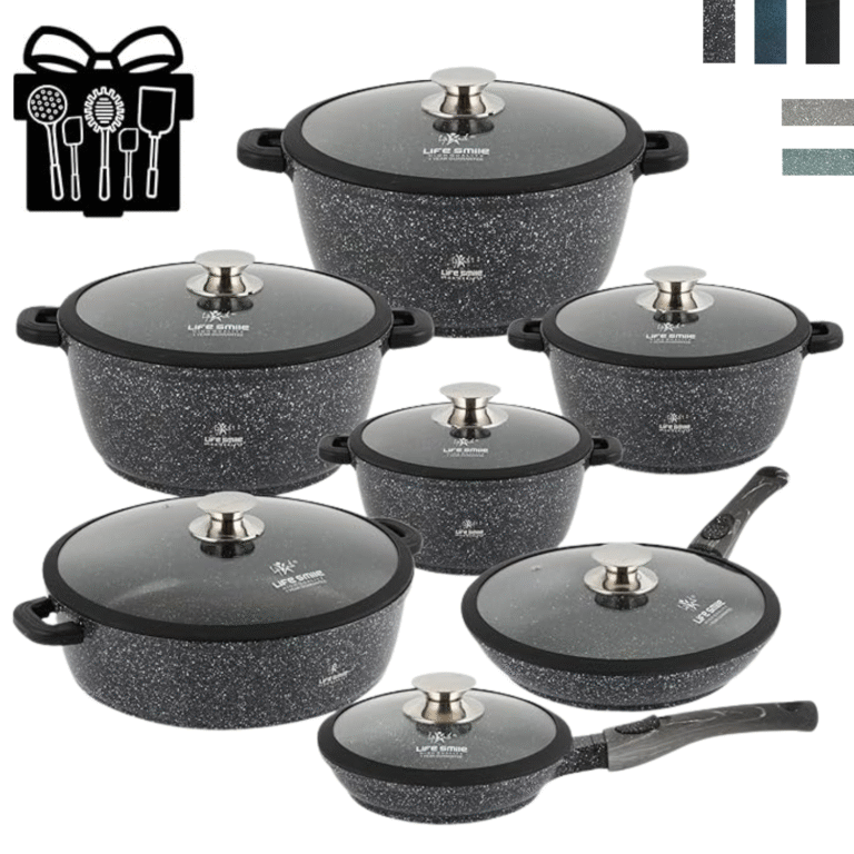 Ez a gránit tapadásmentes edénykészlet azoknak készült, akik szeretik az egészséges és hatékony főzést. A vastag indukciós alap egyenletesen osztja el a hőt, így az étel gyorsabban fő és finomabb. A letisztult fekete dizájn minden konyhába elegáns megjelenést kölcsönöz, a levehető szilikon fogantyúk pedig biztonságot és kényelmet biztosítanak. Tökéletes minden tűzhelyhez és sütőhöz. Emellett 5 extra ajándék konyhai eszközt is kapsz – minden, amire szükséged van, egy készletben!