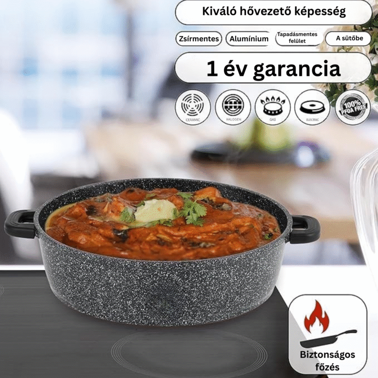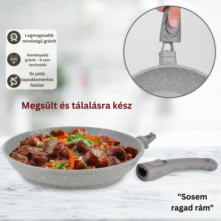 „Őszintén szólva, nem számítottam rá, hogy ennyire lenyűgöz ez a készlet! Szinte minden nap használom, és minden egyes eszköz tökéletesen működik. Semmi sem ragad le – még az olaj nélkül sült tojás vagy zöldség is tökéletesen kijön. A szilikon fogantyúk nagyon kényelmesek, nem melegszenek fel, és könnyen eltávolíthatók, amikor beteszem az edényt a sütőbe. A tisztítás gyerekjáték – csak egy puha szivacsra van szükség. Az 5 mellékelt konyhai eszköz pedig nagyszerű meglepetés – gyönyörűek és nagyon hasznosak!”