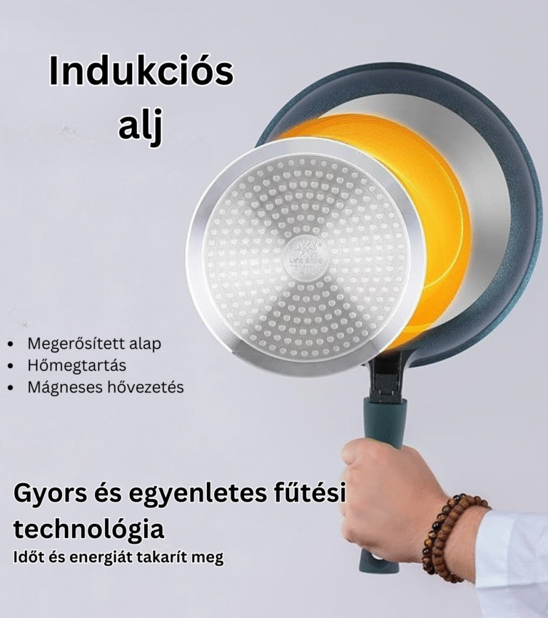 Ez az indukciós aljú edénykészlet gyors és egyenletes melegítést biztosít, így időt és energiát takarít meg. Vastag aljának és hővezető mágnesének köszönhetően a hőmérséklet egyenletesen oszlik el a teljes felületen. Ideális minden főzőlaphoz, beleértve az indukciósat is, tartósságot és maximális hatékonyságot garantál.