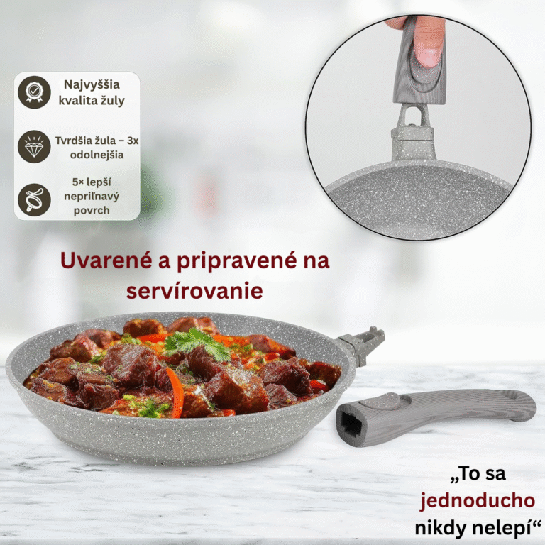 „Úprimne, nečakala som, že ma táto sada tak ohromí! Používam ju takmer každý deň a každý jeden riad funguje perfektne. Nič sa neprilepí – dokonca aj vajcia alebo zelenina vyprážaná bez oleja vyjdú perfektne. Silikónové rukoväte sú veľmi pohodlné, nezahrievajú sa a ľahko sa vyberajú, keď hrniec vložím do rúry. Čistenie je hračka – stačí mäkká špongia. A 5 kuchynských pomôcok, ktoré sú súčasťou balenia, je skvelým prekvapením – vyzerajú krásne a naozaj sa hodia!“