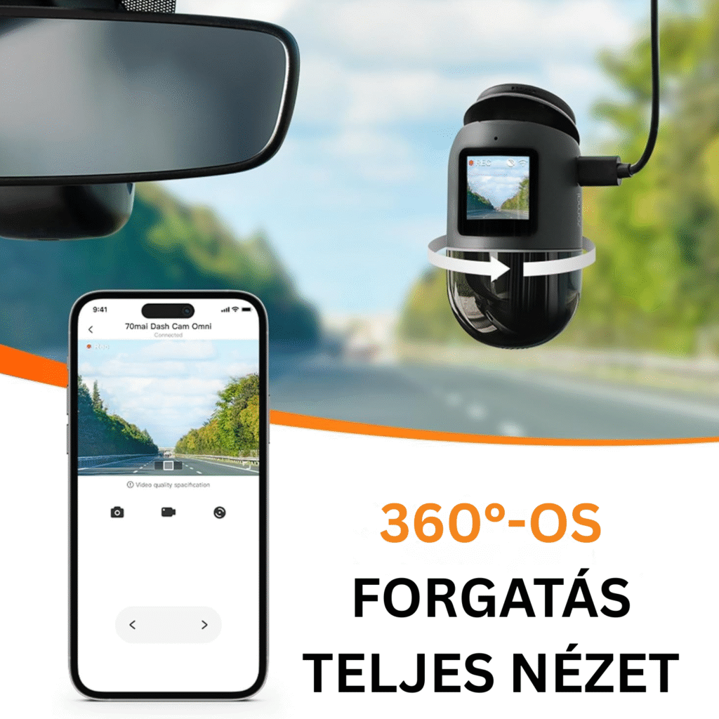 Igen. A készülék 340°-ban forgatható lencsével és 140°-os látószöggel van felszerelve, amely lehetővé teszi a jármű környezetének teljes körű megfigyelését. A kamera automatikusan vagy manuálisan is elforgatható, ütközés vagy gyanús mozgás esetén pedig automatikusan a megfelelő irányba fordítja a lencsét, hogy rögzítse az incidenst.