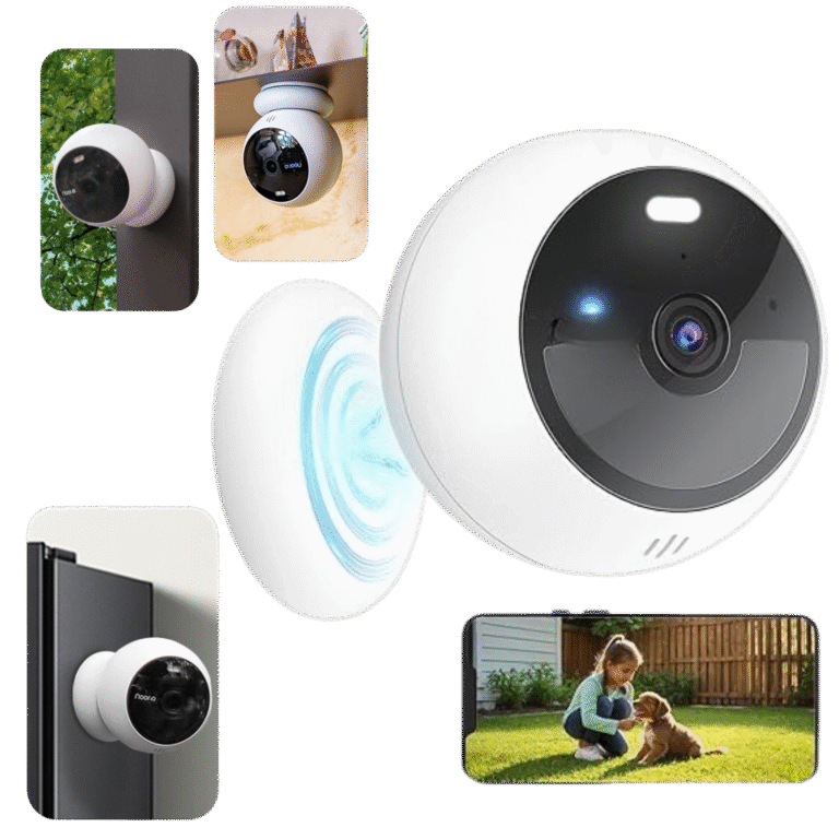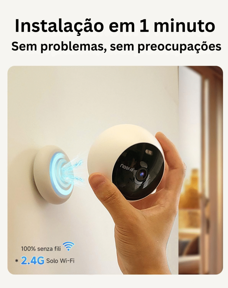 A construção robusta com certificação IP66 resiste à chuva, poeira, neve e temperaturas extremas. Funciona perfeitamente tanto em ambientes interiores como exteriores, independentemente da estação do ano. O armazenamento interno de 8 GB guarda todas as suas gravações sem necessidade de subscrições adicionais.