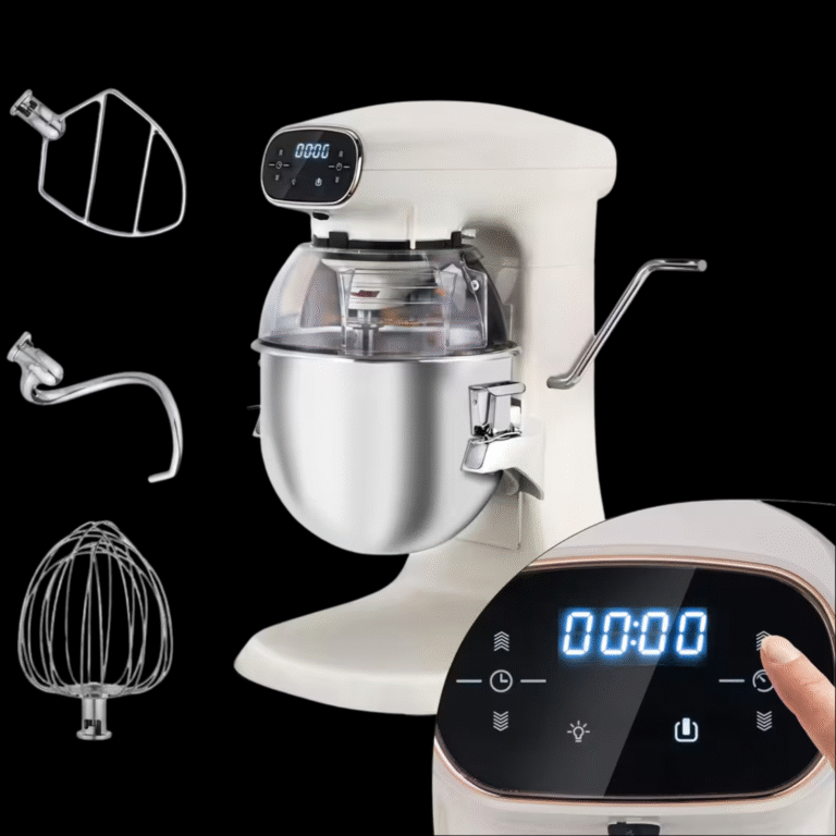 A keverőgép dagasztóhoroggal, lapos keverővel és professzionális habverővel van felszerelve, ideális sütemények, krémek és tejszínhab készítéséhez. Tökéletes pékségekbe, cukrászdákba és pizzériákba, valamint otthoni konyhákba a főzés szerelmesei számára.
