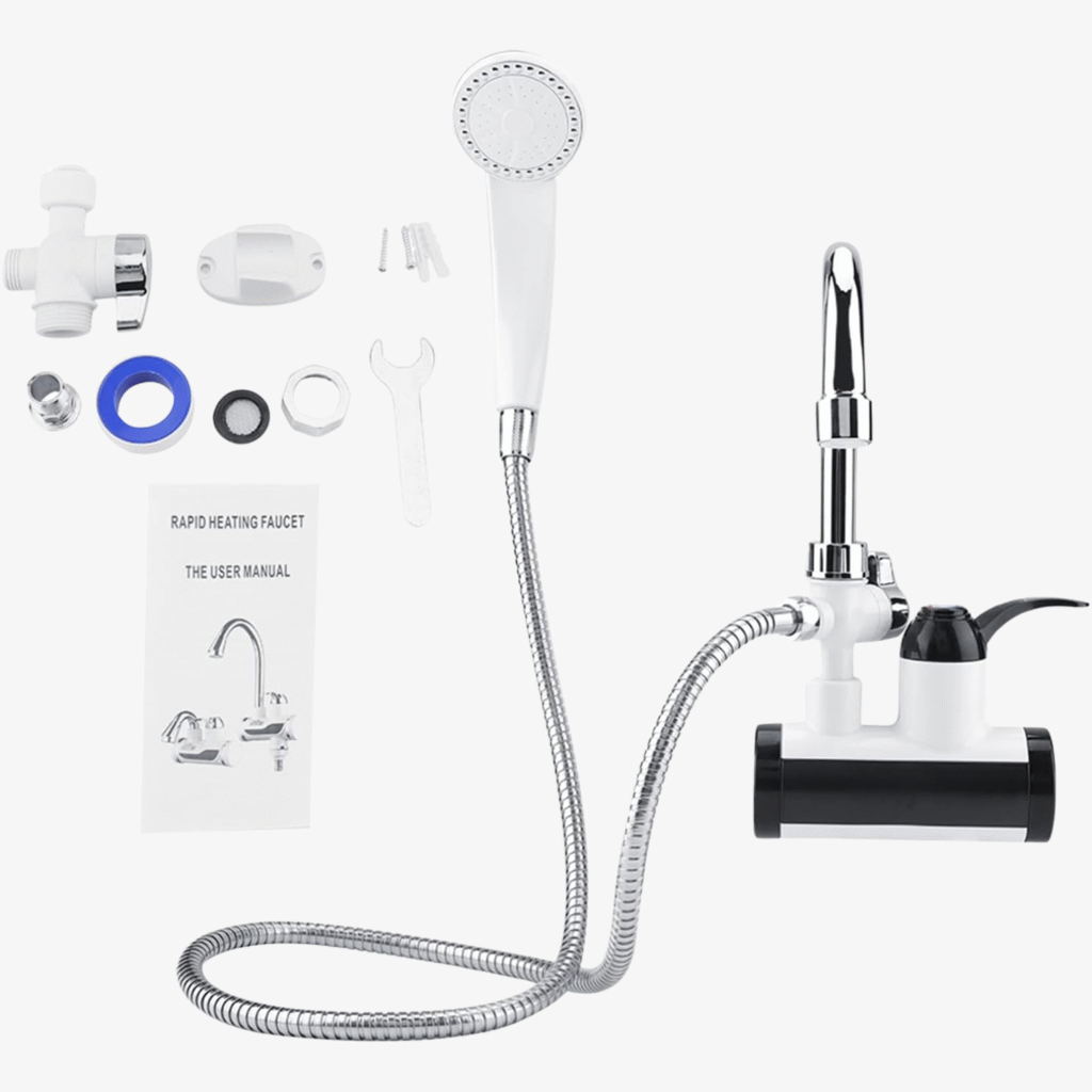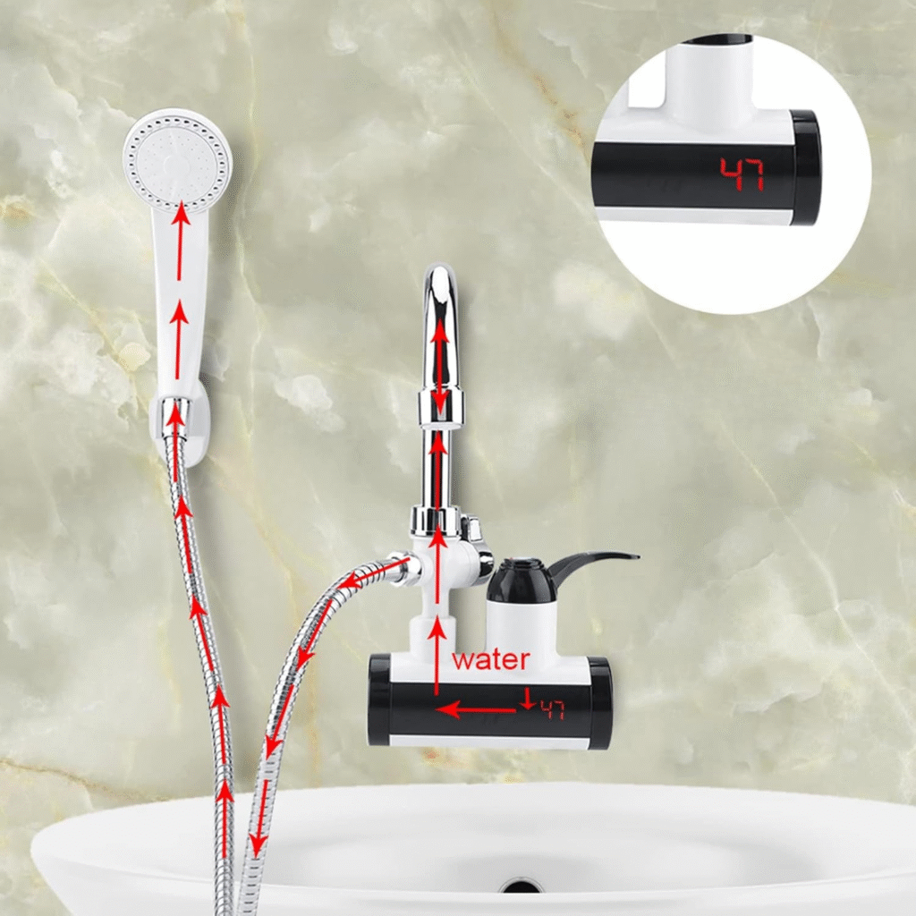 Robinetul încălzește apa în doar 3-5 secunde, datorită puterii de 3000W. Nu este nevoie de boiler sau rezervor extern – încălzirea este instantanee, direct din rețea.
