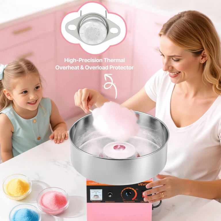 Tento spotrebič nie je len kuchynským spotrebičom, ale skutočným zdrojom radosti a sladkých spomienok. Je ideálny na narodeniny, sviatky, karnevaly a rodinné stretnutia a prináša radosť deťom aj dospelým. Jeho moderný ružový dizajn z neho robí pútavý doplnok na každej párty.
