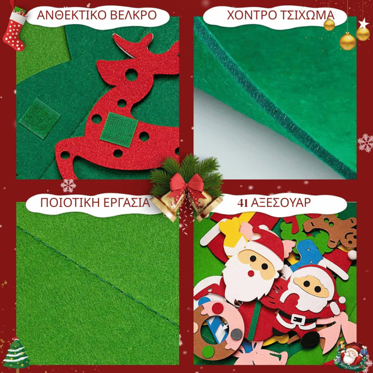 Το δέντρο συνοδεύεται από μια ταινία LED που τροφοδοτείται από μπαταρία, προσθέτοντας ένα εντυπωσιακό οπτικό αποτέλεσμα. Το ζεστό φως αναδεικνύει τα στολίδια και δημιουργεί μια μοναδική εορταστική διακόσμηση. Ιδανικό για παιδικά δωμάτια, νηπιαγωγεία ή γωνιές με χριστουγεννιάτικο θέμα.