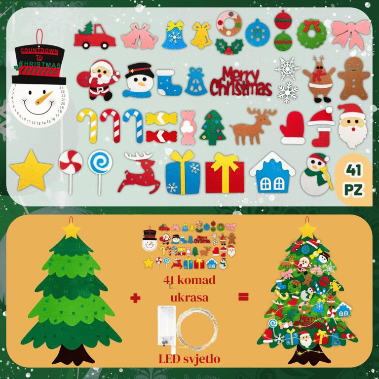 Drvce prati LED traka na baterije, što dodaje spektakularan vizualni efekt. Toplo svjetlo ističe ukrase i stvara jedinstvenu blagdansku dekoraciju. Idealno za dječje sobe, vrtiće ili kutke s božićnom tematikom.