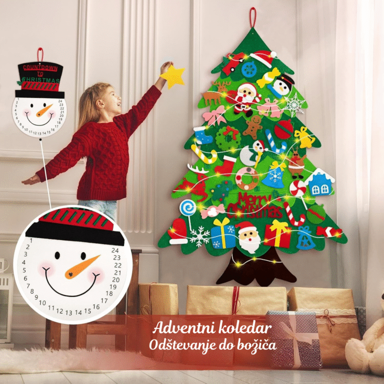 Drevo spremlja LED trak na baterije, ki doda spektakularen vizualni učinek. Topla svetloba poudari okraske in ustvari edinstveno praznično dekoracijo. Idealno za otroške sobe, vrtce ali kotičke z božično tematiko.