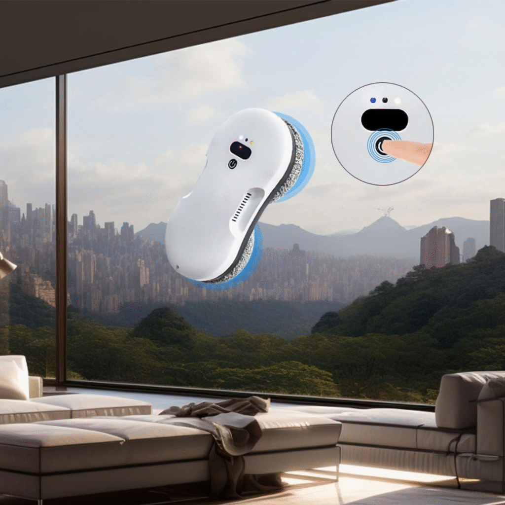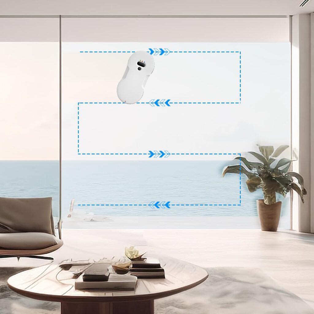 Robotul de curățat geamuri cu aspirație de 5600 Pa oferă putere profesională pentru curățarea eficientă a suprafețelor verticale, fiind ideal pentru ferestre mari, oglinzi sau uși din sticlă, atât în locuințe, cât și în clădiri de birouri. Sistemul inteligent cu detecție AI calculează traseul optim și evită obstacolele, iar pulverizarea dublă de apă asigură o curățenie impecabilă fără urme.